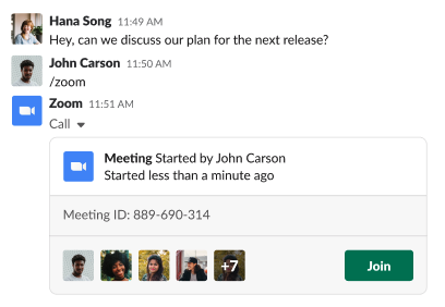 - Start and join Zoom meetings within Slack